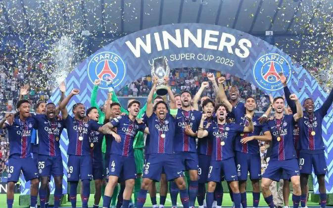 大巴黎在2025年欧洲超级杯中击败了热刺,获得冠军,这也是他们本年度第五座奖杯。可以预见,年底时他们将成为继巴萨和拜仁之后第三支完成六冠王壮举的球队。本赛季,大巴黎无疑是欧洲 ja全球最耀眼的球队,尽管在世俱杯决赛上输给切尔西略显遗憾,但这并不能掩盖他们在2024-2025赛季的统治地位。此次欧洲超级杯冠军不仅是大巴黎的突破,也是法甲足球的壮举。